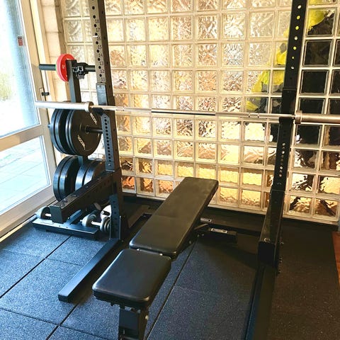 Gymutrustning med flera funktioner för styrketräning och kondition. Inkluderar Multimaskin, , fria vikter och olika träningsstationer. Svart och silverfärgad med metall- och vadderade komponenter. Lämplig för hemmabruk, företag och förening och varierad träning.