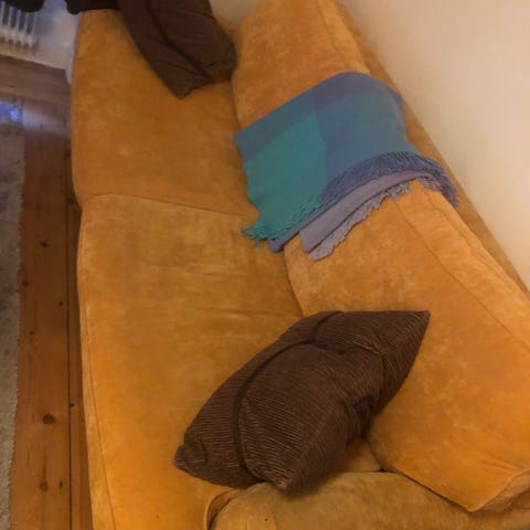 Ena sittkunden är dragkedjan trasig på men det är inget som syns eller märks när kuddarna är i soffan.