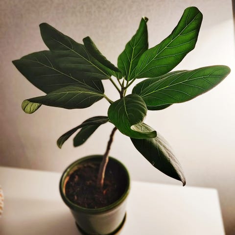 Konstgjord Fikus växt i kruka med gröna och röda blad. Passar som dekorativ inomhusväxt.