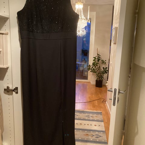 Bonprix Party-/cocktailklänning i svart färg, storlek 44. Klänningen har detaljer som rynkning och dekorativa stenar framtill. Materialet är mjukt och lätt med en kombination av olika texturer. Passar för festliga tillfällen.