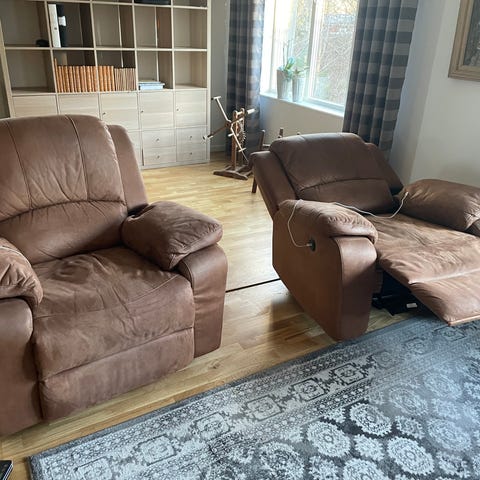 Superbekväm och fullt fungerande men den har några fläckar på tyget. Vi har ett överdrag över det och det följer med köpet. Säljes pga flytt. Hämtas i Herräng