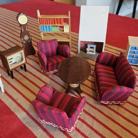 Lundby lekbil tillverkad i trä med röd inredning.