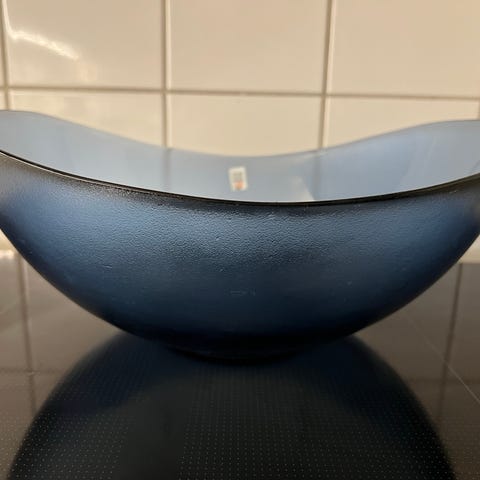 Orrefors skål tillverkad i glas med en rund form och en genomskinlig, lätt tonad färg. Passar som serverings- eller dekorationsskål.