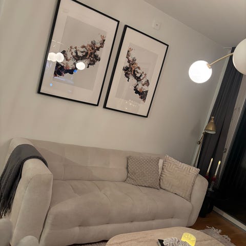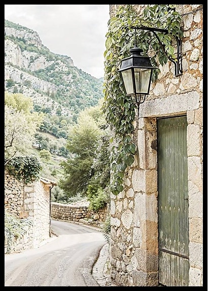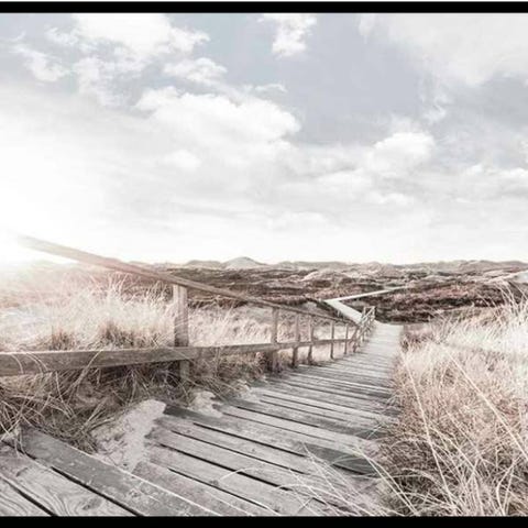 Ett par slitna boxningshandskar hänger i sina snören mot en grov, ljusgrå vägg. Den svartvita fotostilen framhäver handskarnas textur och spår av användning, vilket ger en känsla av historia och personlighet. Postern tillför en sportig och genuin stämning till hemmagymmet, kontoret eller vardagsrummet.