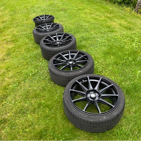 Riktigt snygga japan Racing JR11 hyper black 19x9.5" ET 35 Nav 66.6 5x112. Fint skick, mindre ytligt skrap på en av fälgarna.
