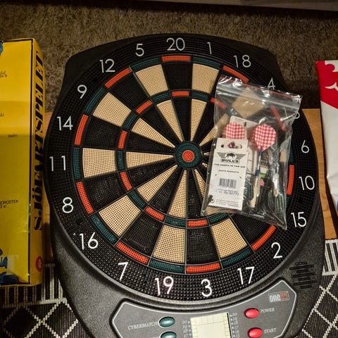 E-Jet Games Darttavla med en diameter på 15 tum, inkluderar 2 olika spel i 1 enhet. Produkten är avsedd för rekreationsbruk och levereras i originalförpackning.