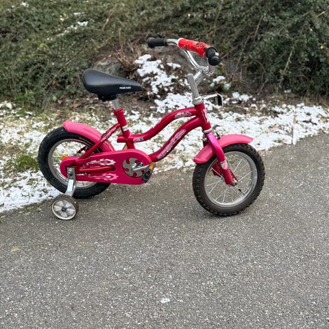 Savona 12 tum barncykel blå med stödhjul och styrstång