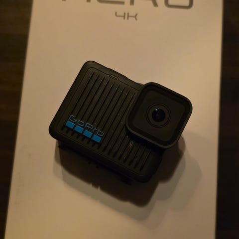 GoPro Hero 8 Black actionkamera med tillbehör inklusive laddare, fästen och bärväska. Kameran är svart och designad för att användas vid sport och utomhusaktiviteter.