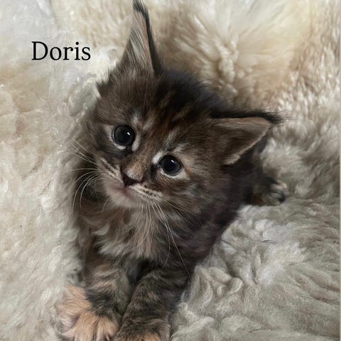 MODER: Maine Coon 6,2 kg med stamtavla med den läckra färgen Rödsmoke Harlekin m. vitt . Hennes päls är lättskött, långhårig och glansig som inte tovar sig. Supersocial knäkatt och älskar att ansikts-puffa.