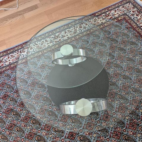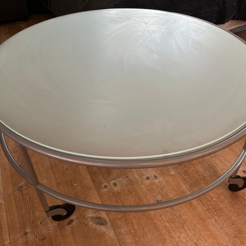 Soffbord, glas, nypris 2.200:-, H 30, diam 90