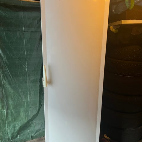 frysskåp i vit färg. Frysskåpet har flera transparenta lådor för förvaring och en höjd på cirka 143cm samt en bredd på cirka 55cm. Produkten är avsedd för hushållsbruk och erbjuder utrymme för frysning av matvaror.
