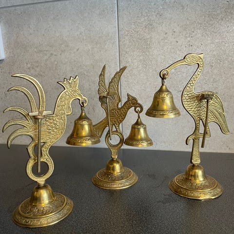 Mässingsklockor i fågelmotiv från Saudiarabien
