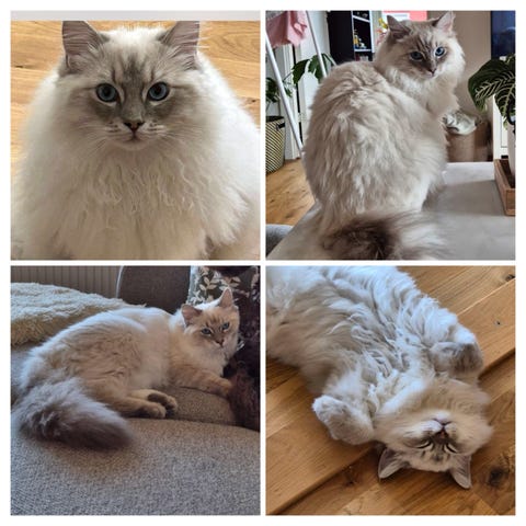 Linus är renrasig ragdoll utan stamtavla, snart två år, och har flera friska kullar bakom sig.