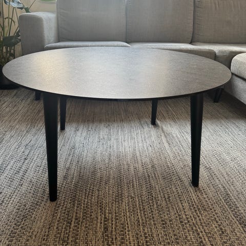 Skicket är över lag bra, men finns en repa på bordsskivan. Diameter 59 cm, höjd 38 cm. Hämtas i Saltsjö-Boo.