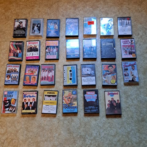 Rock'n'Roll 6 Pack kassettband samling med 6 kassettband innehållande totalt 120 låtar. Innehåller musik från artister som Roy Orbison, Fats Domino, Chuck Berry, Lloyd Price, Little Richard med flera. Kassettbanden levereras i ett svart fodral.