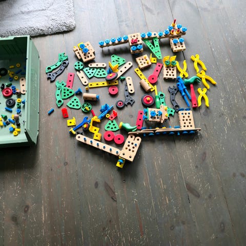 Inte helt rätt delar, se bild, vi hade fler delar innan som barnen sålde och därför saknas några här. Men den har varit smidig att ta med sig när man ska iväg :)