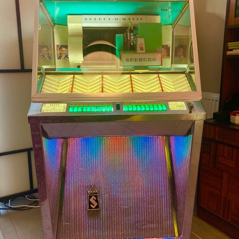 En renoverad jukebox med bland annat nytt krom, ombyggd förstärkare, faner mm.