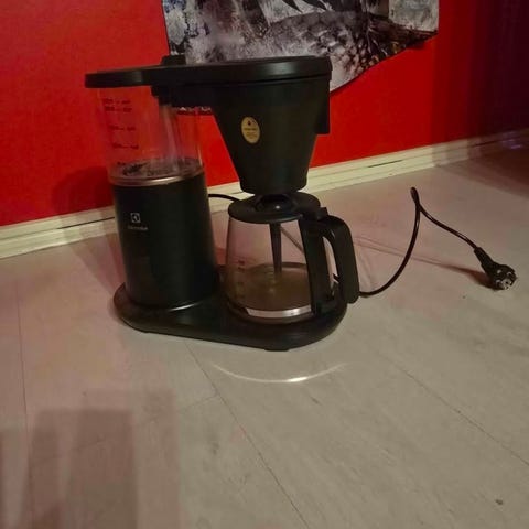 Glaskanna till kaffebryggare med svart handtag och lock