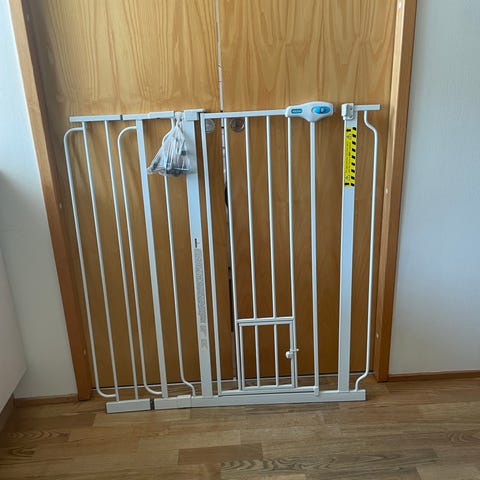 Carlson Säkerhetsgrind tillverkad i metall. Designad för att användas som säkerhetsbarriär i hemmet, exempelvis för barn eller husdjur. Kattdörr finns på gallret. Extra hög. Mått: höjd 91,44cm, bred från 73,66 till 92,71cm.