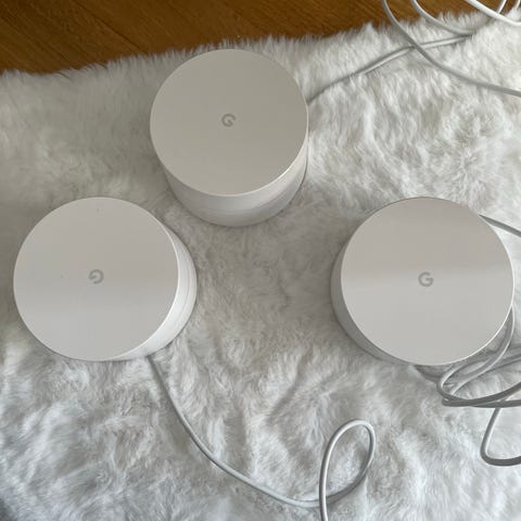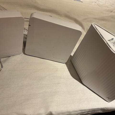 Linksys Velop WHW03 V2 mesh wifi-system i vit färg. Systemet består av tre noder för stakt trådlöst MESH nätverk i hem eller kontor. Varje nod har nätverksportar för ethernetanslutning samt strömanslutning på undersidan. Passar för att utöka räckvidden på befintligt nätverk och ge täckning i flera rum. Monteringsfästen för vägg eller annan placering ingår enligt bild.