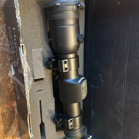 Aimpoint Micro H-2 2MOA rödpunktssikte med snabbmonterad bas för Tikka T3. Kompakt och lätt design för snabb målanskaffning. Väldigt lite använd.