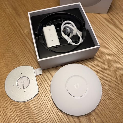 Levereras komplett med strömadapter. Enheten är fabriksåterställd och redo för konfiguration.