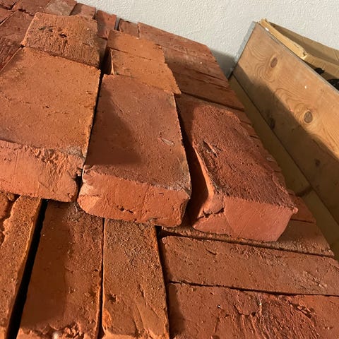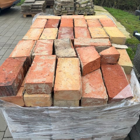 Vi säljer slaget tegel från Tegelmäster i färgen ”Brown Devil med Gult”. Det blev över efter vårt bygge och har aldrig använts.