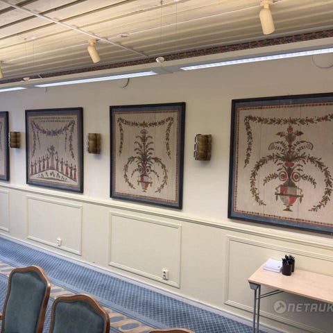 Panelen längst till höger på bilden är klippt i 4 delar för att passa den dolda dörren. Dörren + tillhörande karm och gångjärn ingår i försäljningen. Panelerna skruvas fast i väggen bakom med mindre skruvar samt bultar, vilka också är behandlade / har en rostig finish - Dessa skruvar och bultar medföljer också i försäljningen.