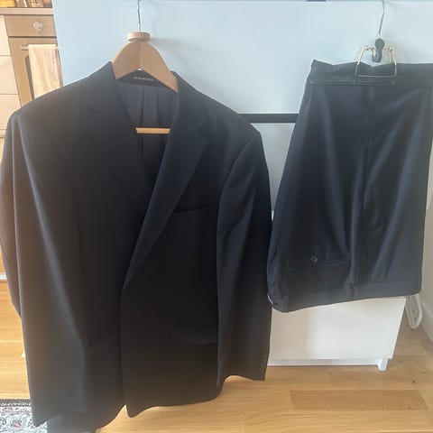 Säljer en superfin kostym från oscar jacobson. Både kavajen och byxorna är storlek 50, kavajen är modell Edmund och byxorna Damien. Mycket fint skick, nypris 6500kr. Passar även fint med skorna i min profil. Båda är i samma färg, svart. Vänligen besök hemsidan för mått (uppskattad storlek M/L)