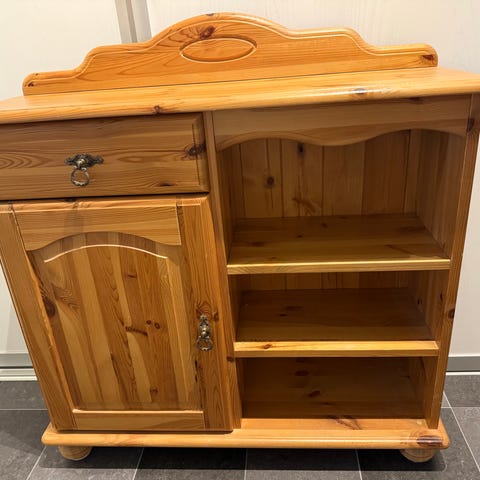 Gammal gedigen vitmålad byrå. Hack osv finns men går för den som vill att slipa ner och måla eller ha den som den ser ut. Tung och stabil.