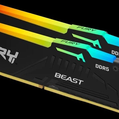 Kingston Fury Beast RAM-minne i DDR5-typ med svart färg. Är kompatibelt med motherboards som stödjer DDR5.
