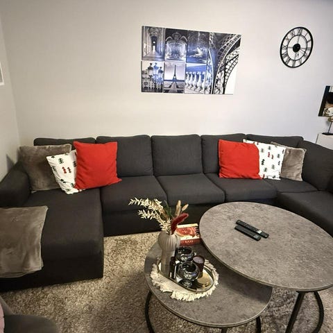 Nypris 15 995 kr. Jag har diskbråck och soffan var för mjuk för mig att sitta i, dock underbar att sova i. Den är jättesnygg. Använt 4 månader. Hel och ren