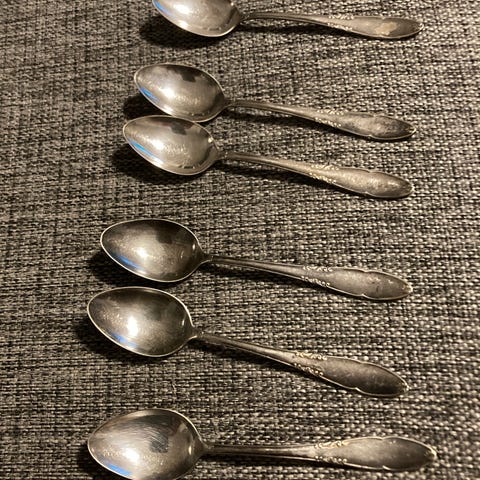 Set med 6 skedar i rostfritt stål med 24 karat guldplätering