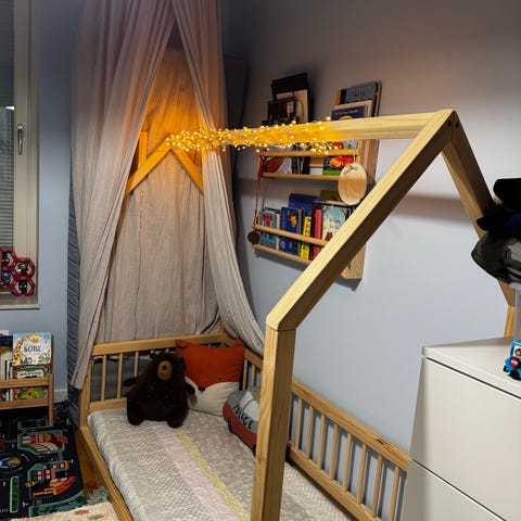 Fin hussäng från Jotex. Perfekt säng att byte till från spjälsäng. 90x200