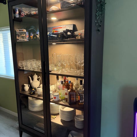 En överdel till Markskel vitrinskåp/skänk i fint skick. Mått B132xH111xD36 cm. Skåpet är tungt så det krävs minst 2 personer för att bära.