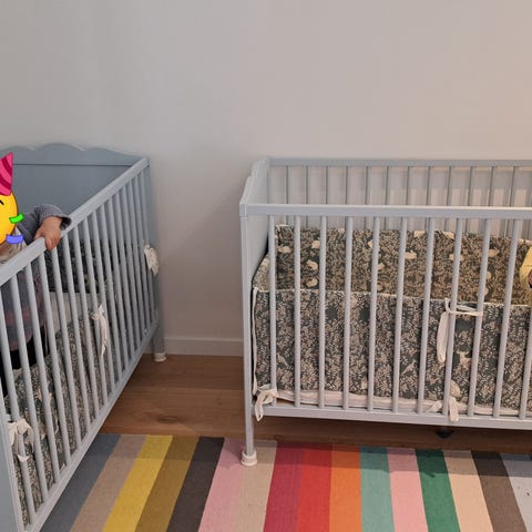 Spjälsäng från Ikea som är nedmonterad. Lättare slitage på sidorna. Madrass medföljer om önskas. 300 kr