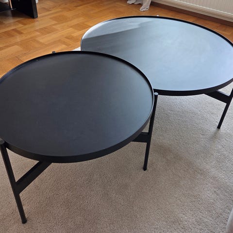 Kraftigt soffbord med tillhörande sidobord i mycket gott skick. Soffbord b100cmxh15cm, sidobord b60cmxh40,5cm