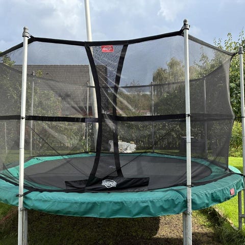 Studsmatta,rund,av märket North Pioneer, 430 cm i diameter. Vinterförvarad inomhus. Säljes pga flytt. Nypris 6300.