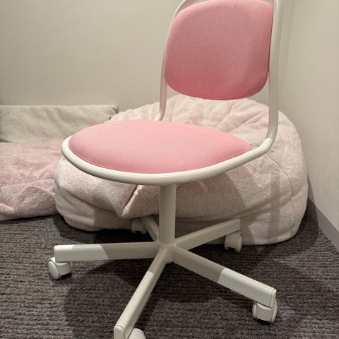 En fin grå stol till ditt skrivbord. Stolen är från Ikea med namnet ”ÖRFJÄLL”. Det går att justera höjd, den går att rulla och man kan snurra den.