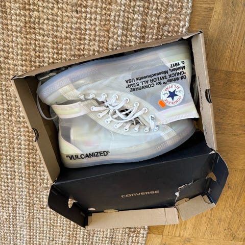 Converse One Star sneakers, storlek 46, grå mocka. Klassisk design med snören och en gummisula med slitbana för bättre grepp. Perfekta för vardagsbruk, de ger komfort och stil. Tyvärr är de för små för mig. Aldrig använda. Nya 900, säljer för 450.