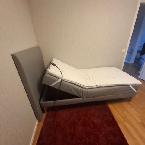 Ställbar säng, inköpt på Mio för ca 3 år sen. Madrassen är fast, bäddmadrass saknas.