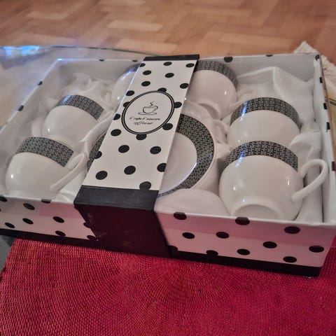 Mio Hildur servis där det kommer med 12 tallrikar och 12 muggar.