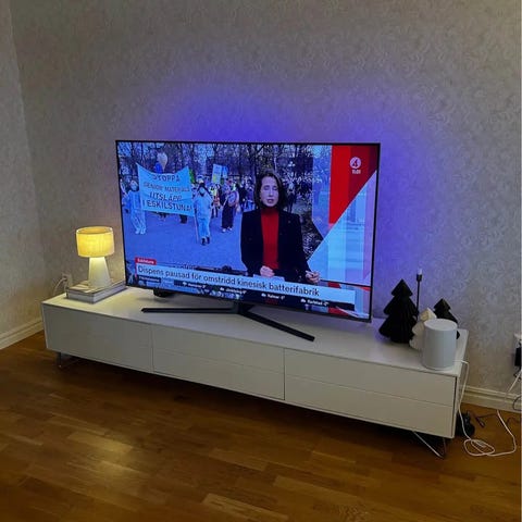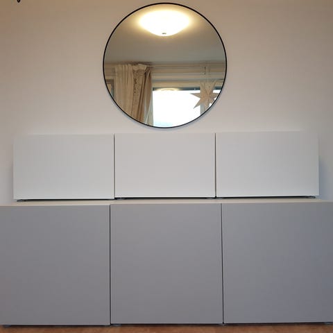 Förvaring / tv bänk vit stomme ljusgrå fronter