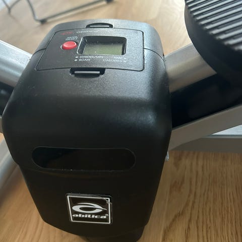 Löpmaskin från okänd märke med digital display och handtag. Maskinen är avsedd för löpning och gångträning inomhus.