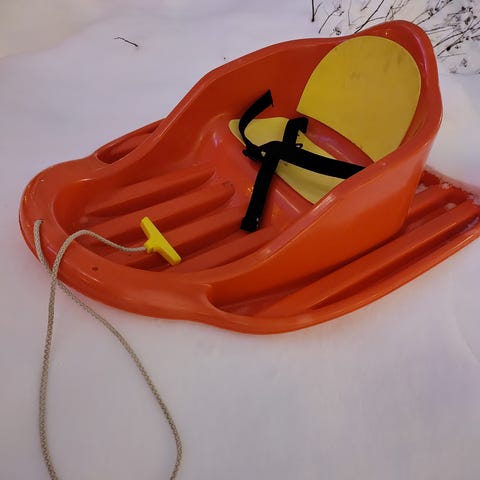 Baby pulka med säkerhetsbälte. Använd 3 gånger.