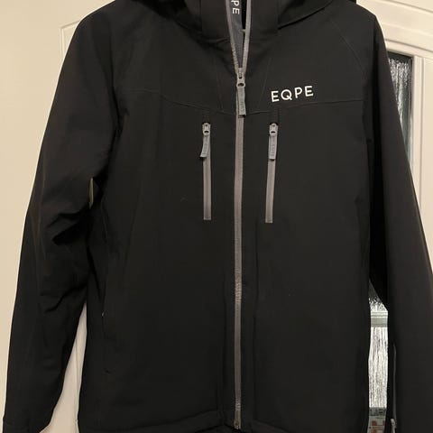 EQPE Jacka och byxor, använda en säsong. Deep Forest Green. Finns lite synliga slitmärken på utsidan längst ner på byxorna men inga hål. Finns hängslen och kapuschong, båda borttagbara. Nypris ca 2000kr inkl. set-rabatt 300kr.