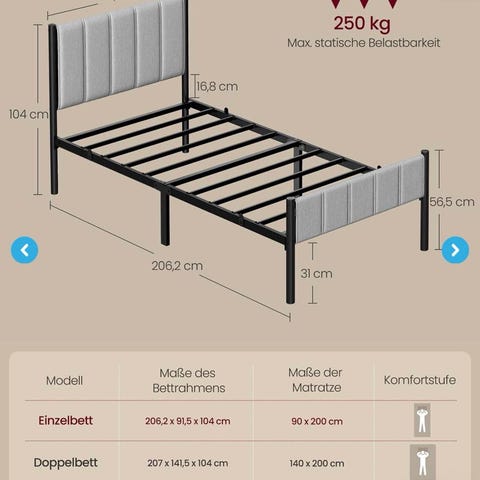 Metallsäng / sängram – 90 × 200 cm – Stilren & stabil