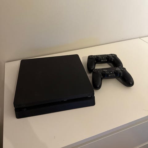 Playstation 4 med en tillhörande kontroll. Vet dessvärre inte när det är inköpt. Stått ett tag. Inga spel tillhör.