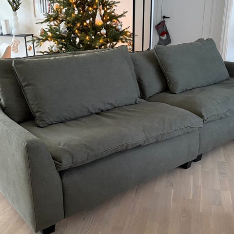Säljer en Bellora 1sits soffa utan armstöd tyg DarinI pink färg och svartbets benH5 Köpte från Mio 20200507