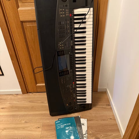 Yamaha PSR-E453 keyboard med 61 tangenter och olika ljud- och rytmfunktioner. Instrumentet är avsett för musikskapande och övning.